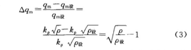 在其他參數(shù)不變的情況下,qm與ρ之間的關(guān)系為:qm≈k,√ρ。可以看出,水蒸氣的流量與其密度的平方根成正比關(guān)系。水蒸氣是可壓縮性氣體,當(dāng)其壓力、溫度變化時(shí),其密度將發(fā)生明顯變化,這將引起流量很大的誤差。實(shí)際流體狀態(tài)(壓力、溫度)與流量計(jì)設(shè)計(jì)時(shí)的狀態(tài)(壓力、溫度)偏離造成的相對誤差可由公式(3)表示: