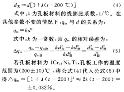 測量水蒸氣流量時(shí),如果設(shè)計(jì)工況為200℃,孔板內(nèi)徑為d,則孔板內(nèi)徑在實(shí)際工作狀態(tài)下的修正公式為: