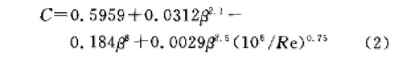對于給定的標(biāo)準(zhǔn)孔板,當(dāng)β為常數(shù)時(shí),C僅是Re的函數(shù)C=f(Re)。在公式(1)中,將C用公式(2)而不是一個(gè)常數(shù)來代替,可提高計(jì)量的精度。