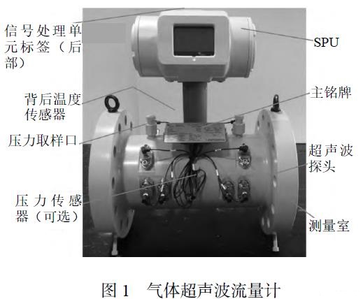 超聲波流量計主要由信號處理單元、超聲換能器(探頭)、流量計表體等部分構(gòu)成,如圖1 所示。其中信號處理單元接收探頭信號并將信息遠(yuǎn)傳流量計算機(jī);探頭通過換能器端口安裝于表體,負(fù)責(zé)收發(fā)聲波,并輸出電壓信號;流量計表體部分包括上下游直管段,上有超聲換能器端口、取壓口等。此外,壓力變送器、溫度變送器、色譜分析儀及流量計算機(jī)作為輔助儀表,用以測量現(xiàn)場數(shù)據(jù)。流量計算機(jī)利用現(xiàn)場數(shù)據(jù)計算介質(zhì)工況流量,并將工況流量轉(zhuǎn)換為標(biāo)況流量。