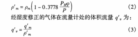 經(jīng)濕度修正的氣體在流量計(jì)處得密度ρ'm為: